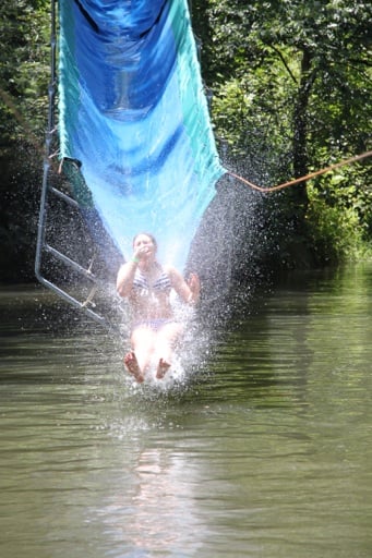 At dinner we celebrated an American tradition of hamburgers, chips, and watermelon followed by a scrumptious bread pudding for dessert that did not last long! Rockbrook encourages healthy eating choices and independence through each girl creating her own meal, so our salad bar, vegan/vegetarian options, and peanut butter & jelly station supply additional dietary choices for the girls. Yet another way that we foster independence is through free times, such as Free Swims and Twilight. I saw many girls on the hill during Twilight this evening after dinner, playing tetherball, exploring the creeks, and chasing fairies through the gardens. Last, but certainly not least, the girls finished their days with Evening Programs in each line’s lodge. After receiving the intriguing theme of “National Enquirer” (exciting headlines to act out), they were off to their cabins coming up with creative skits, costumes included. Finally it was off to bed, after milk and cookies and the soothing Rockbrook prayer. Sweet dreams to our adventurous Rockbrook girls, and may they continue to seek out and overcome new challenges.