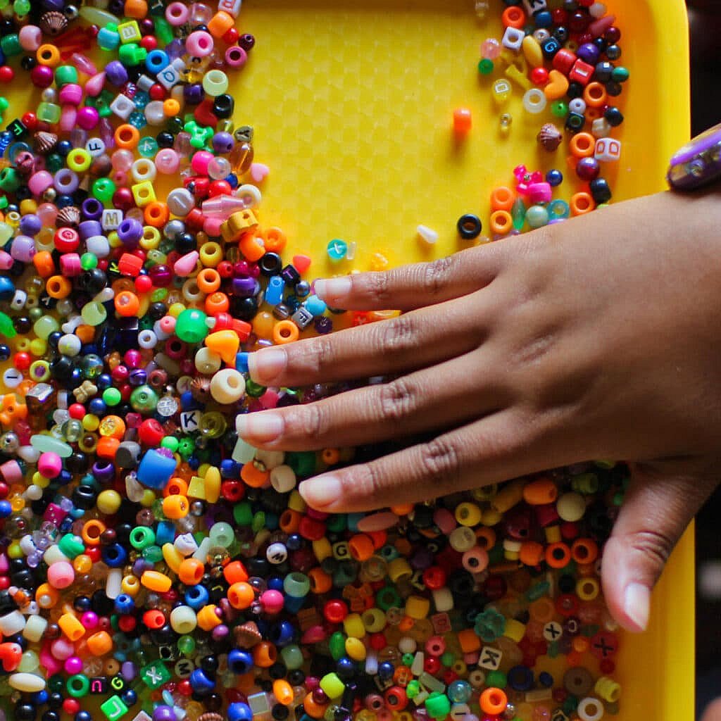Girls are immediately creative by choosing beads and string to make begin their pieces.
