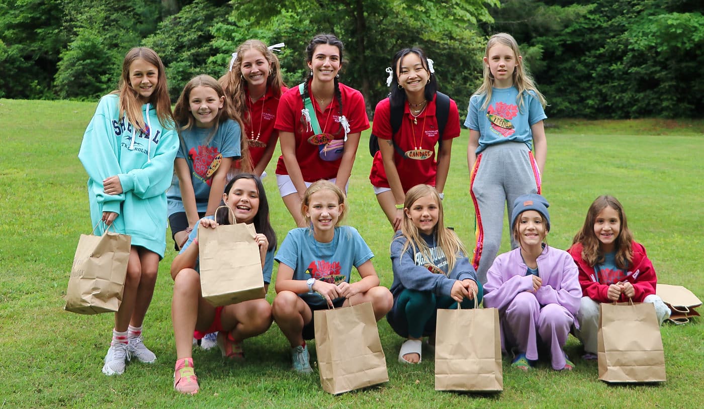 Walk around camp and that’s what you’ll see— groups of campers deeply engaged in outdoor activities. You’ll see girls making things, being creative with their hands as they cut wood, work a needle and thread, or tie a white t-shirt ready for dyeing. Groups are zipping through the trees on our zipline course, while others are hiking up the steep trail to the top of Castle Rock. Others are playing gagaball, heading to the lake with their towels strung over shoulders, or perhaps loading up a van to find a waterfall in the nearby Pisgah Forest. In all of these examples and more, there’s an added thrill of togetherness making things more fun. That’s camp life— days filled with many many friends, many many activities, charged with laughter and excitement.