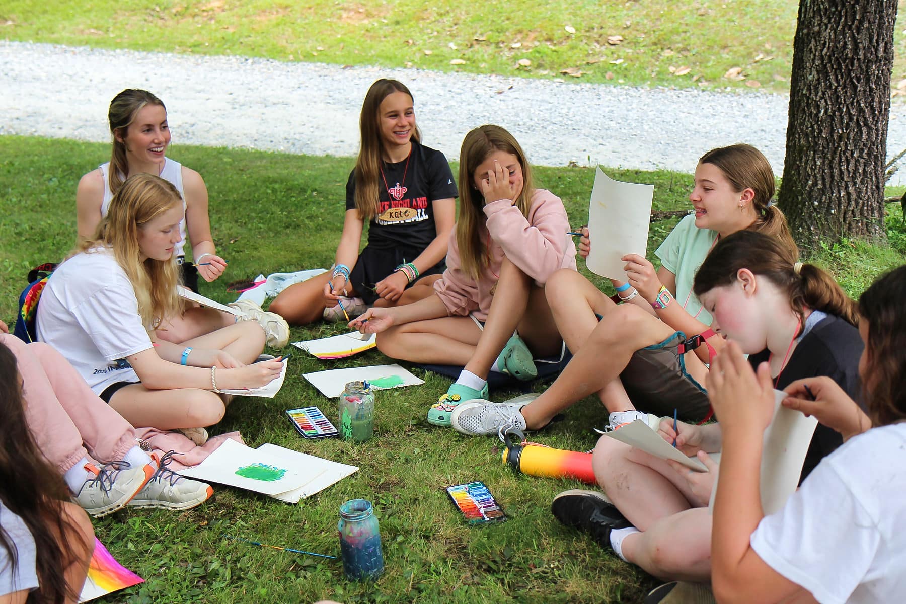 Anything with water instantly makes Cabin Day more fun!!! We had a cabin hike out to lovely Rockbrook Falls, while another cabin stopped short and took a dip in the Rockbrook Mermaid pools, also known as the Mermaid Cove. Another cabin group was drawn to the picturesque creek outside of Curosty (the fiber arts cabin) and used the running water to create beautiful watercolor paintings.