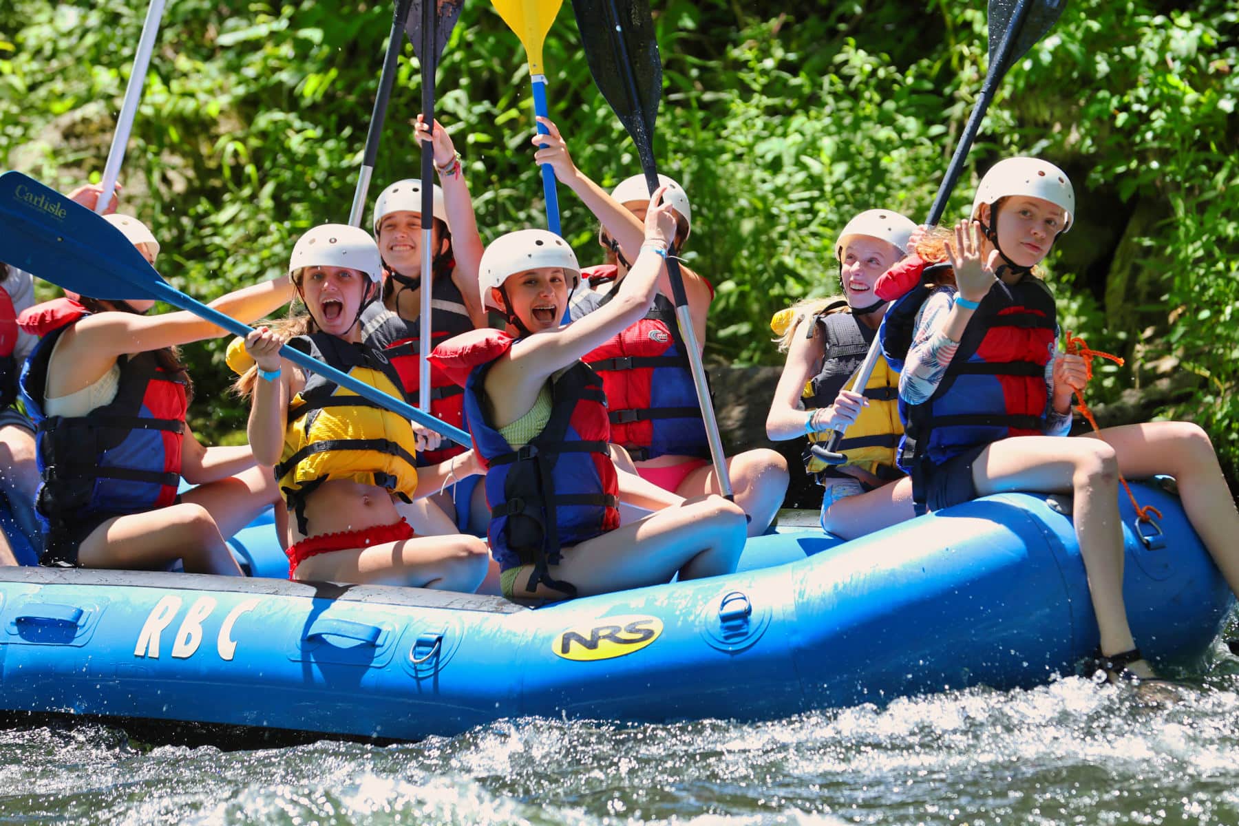 Running the river is certainly thrilling, but when it’s in a raft of silly Rockbrook girls, it’s even better. Having a bunch of friends in the raft with you makes the songs louder, the poses for the camera goofier, and the shrieks laughter more hilarious when someone falls out of, or bounces back into the raft. These trips are big fun, and today the perfectly warm, sunny weather was a welcome boost.