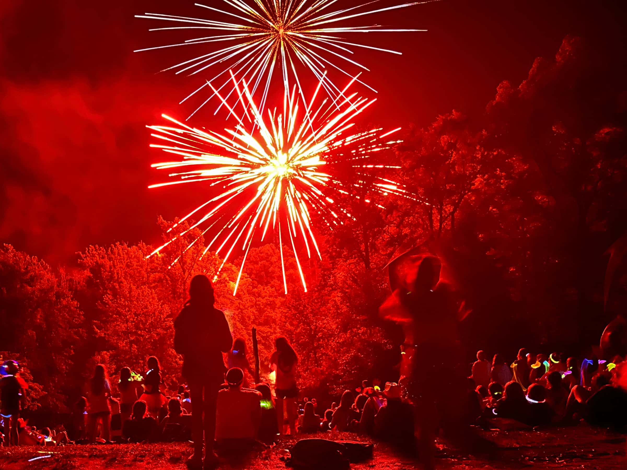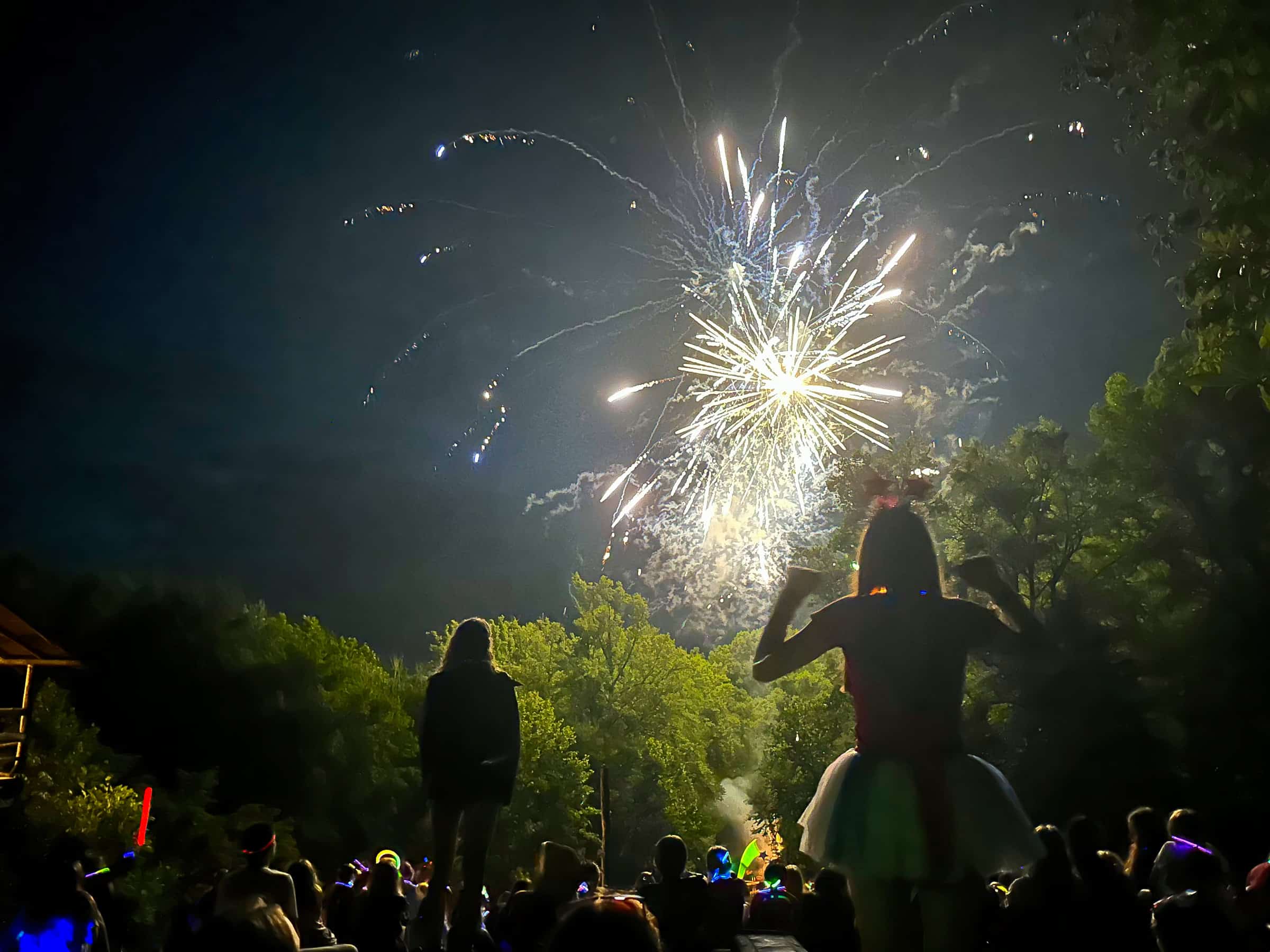 As darkness fell, the highlight of the day was our very own Rockbrook fireworks show. We gave out glow sticks to all the girls, and cranked up some dance music to make it even more of a celebration. For the next 25 minutes or so, everyone enjoyed a sing-along dance party, with the girls twirling their glow sticks and cheering with each sparkling blast in the sky. It was an exhilarating way to end a great 4th of July at camp.