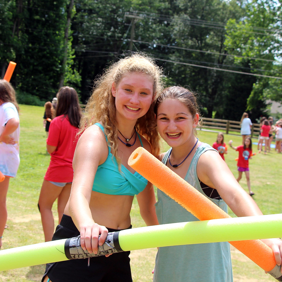 For all of us who stayed in camp, our morning was filled with a whole range of activities. Girls were climbing high above camp on Castle Rock, trying to “slay the dragon” (which is lingo for climbing to the top of our route called “Dragon Tail”). Others were whooping as they flew through the trees on our zip line course. A few Senior girls took on the challenge of climbing the Alpine tower blindfolded, while at the lake, Sarah and Stephanie, our kayaking instructors, were teaching a roll clinic. Archers and riflemen (girls actually!) were gleefully shooting holes in their targets. Equestriennes were gliding their horses around the arena, outdoor ring, and jump course. Girls played tennis; they shot basketball, and swam laps in the lake. Of course, there was non-stop arts and crafts too, from weaving on the loom to stringing beads and glazing pottery, making candles and blended dot painting. It’s difficult for our photographers to capture all this activity— though they do pretty well! — but you can tell, this place is bustling!