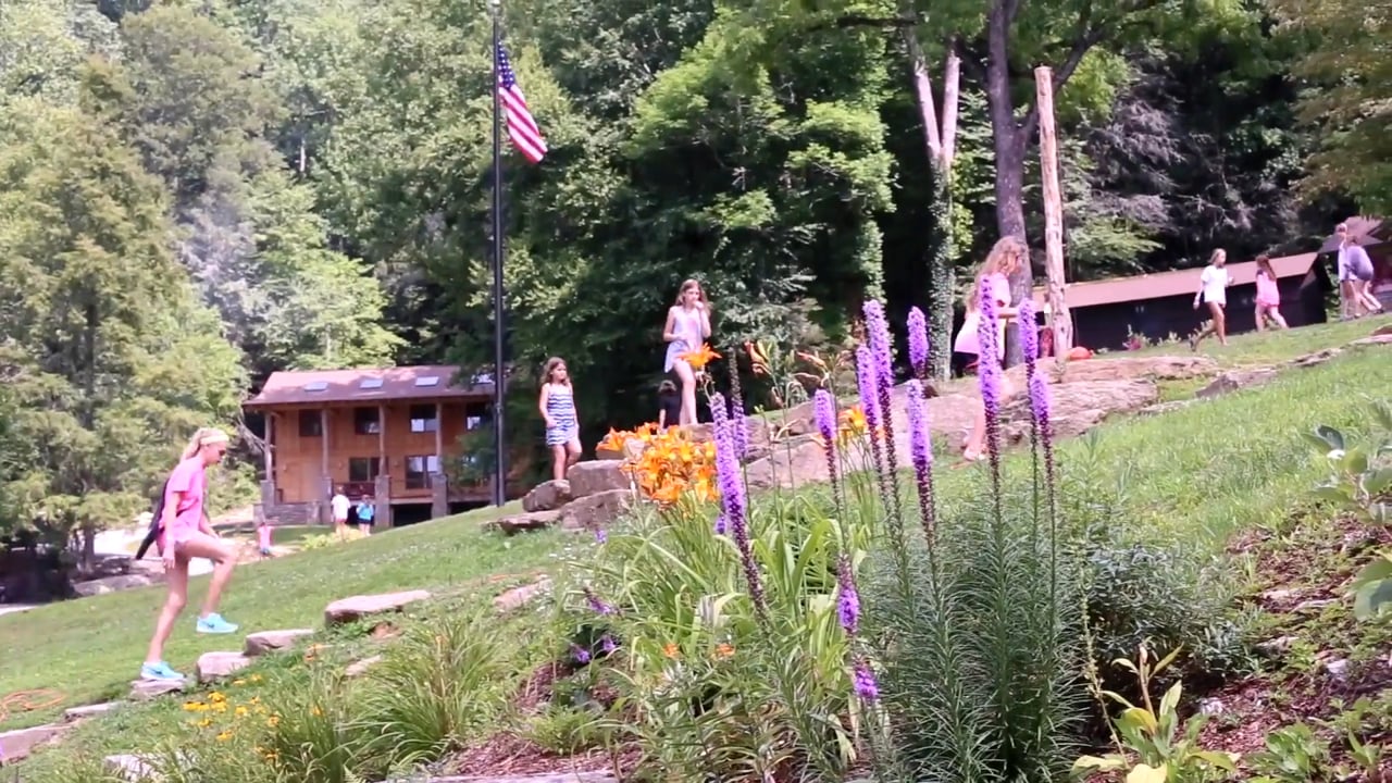 All of the Senior campers gathered later this afternoon for a picnic dinner in the Pisgah Forest, and a stop at Sliding Rock. Our picnic this time included a huge pile of watermelon, baked spaghetti the kitchen prepared for us in advance, salad, and sliced baguettes. I’d say it was far more of a complete meal than a “picnic.” One girl bragged to me that she ate 14 pieces of the bread! After eating, we enjoyed digesting our dinner a bit by running around playing a game of “I’m a Rockbrook Girl.” Akin to musical chairs, this game gets the the girls running from one place to another in a circle with each round identifying a new “Rockbrook Girl” for the center of the circle. There’s a lot of laughing and screaming, like all great outdoor games. It was a short trip in the buses back to “the Rock,” and soon the girls were zipping down the natural water slide splashing into the deep pool at the bottom. It’s hard to describe how much the girls love sliding rock. As you slip, spin and roll through the “freezing” cold water, it’s only natural to scream your head off, and as you watch your friends, to laugh hysterically. It’s all great fun.