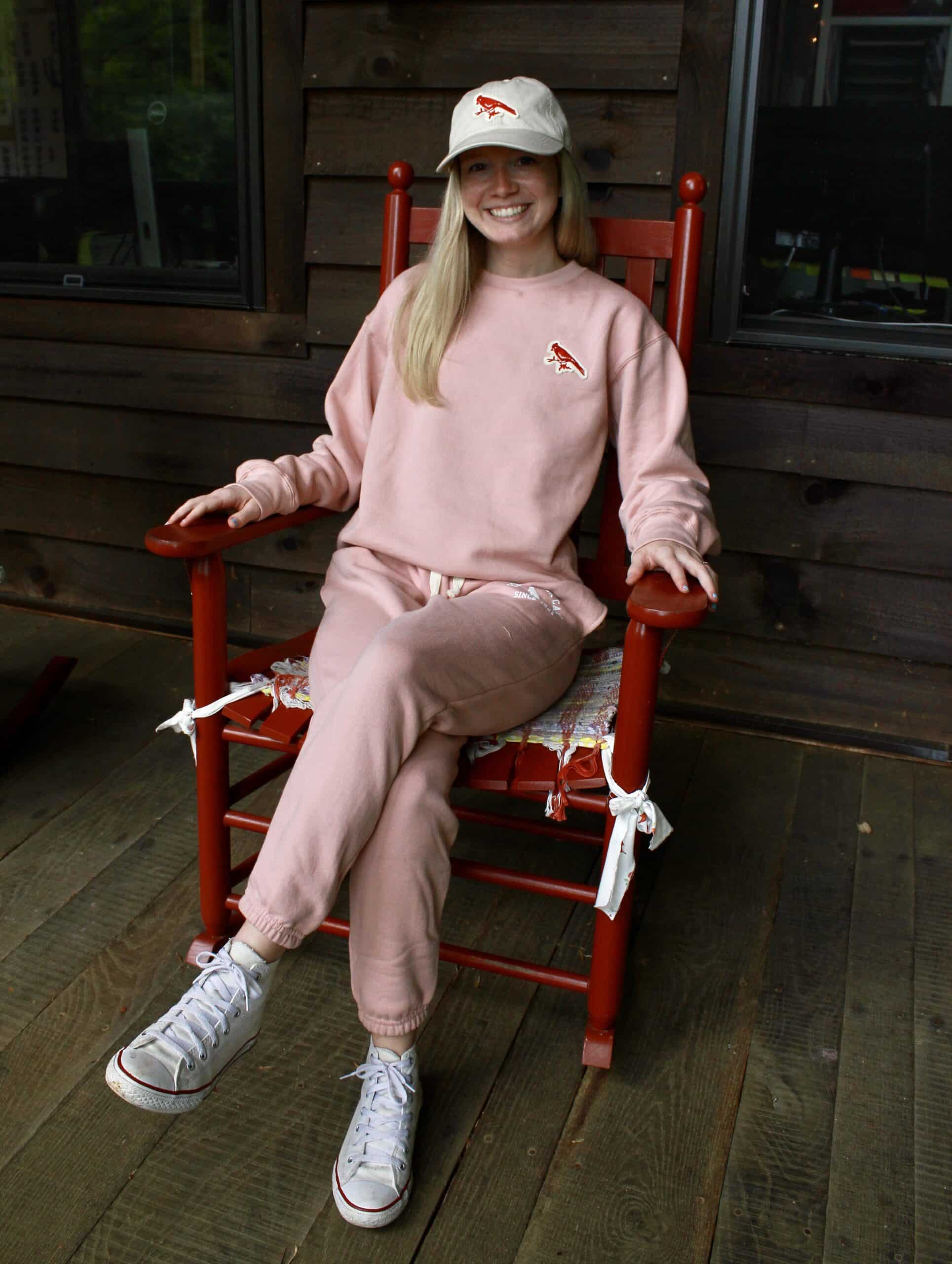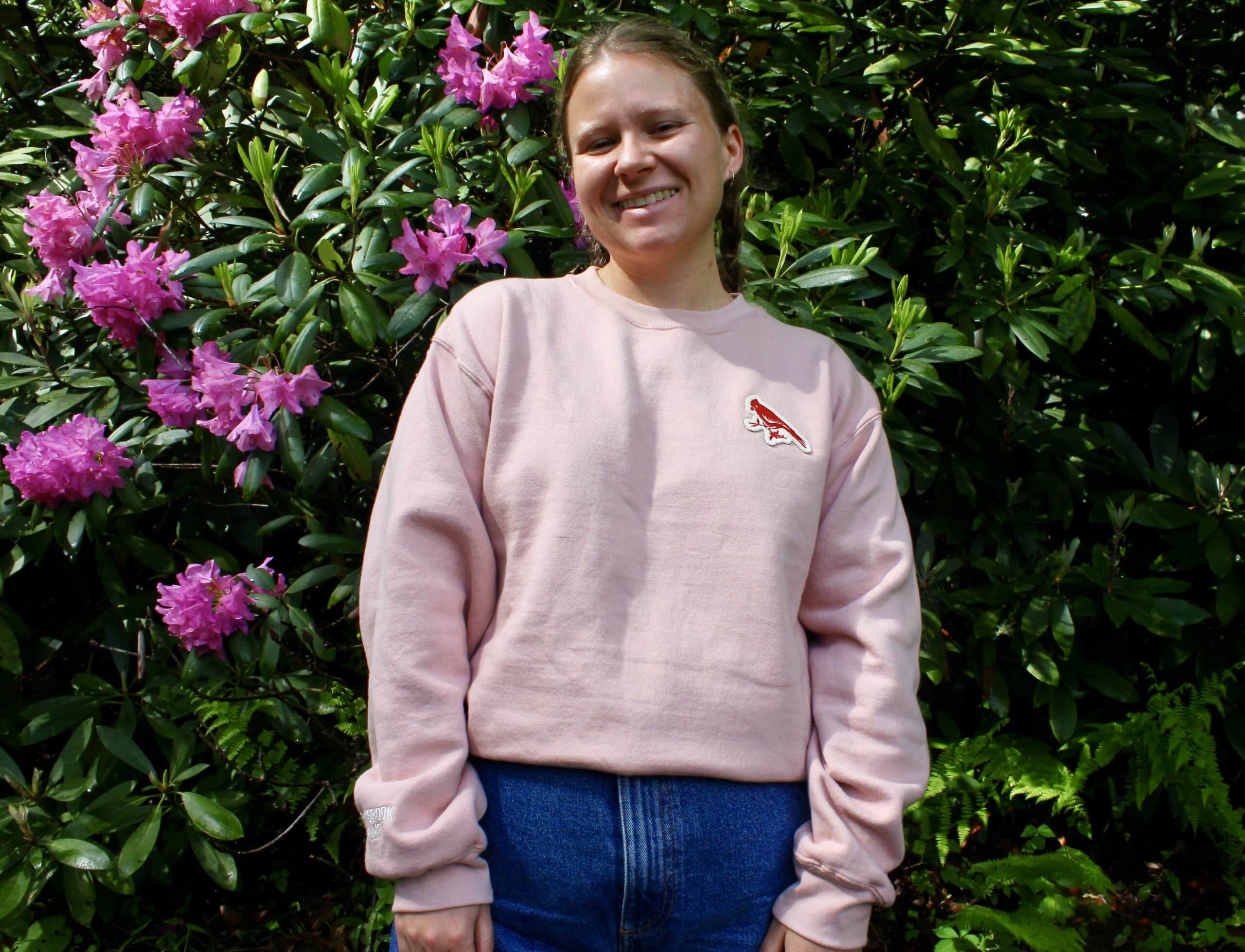 Show up to muffin break looking cozy and bright in our new Rockbrook sweatshirt! The crewneck pullover style features a felt embroidered, vintage-inspired cardinal patch on the front and “Rockbrook Camp” embroidered in white on the cuff. Reminiscent of the mountain laurels that grow around camp, the light pink color will look great accessorized with an arm of colorful friendship bracelets you made in jewelry making. For extra flair, complete the look with a pair of matching sweatpants.